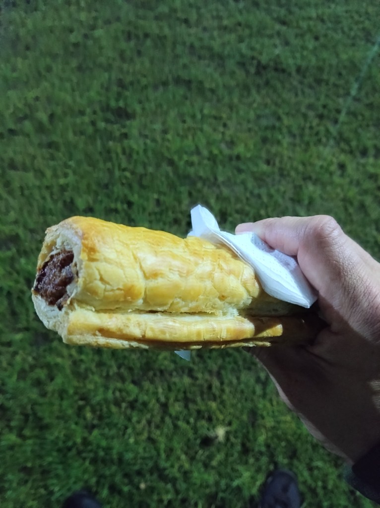 Half time saw a decent kick about. If you know IMP there is a wee training bitty behind the far goal. In here there is a set of goals. I suggested a crossbar challenge type game but Wee Man thought the ball might go over the fence. So he opted for a post challenge. If he hit the post once he hit it 10 times. It was quite incredible. The second half saw a better Dyce. They were unlucky not to equalise early doors when Hermes keeper Otto was caught under the ball at a corner but nobody could take advantage. The half was as tight as a dolphins butt and one thing that was clear was the Hermes defence was very sound at their job. Really solid preventing what seemed a rejuvenated home side. Not that there was a lot of chances in the second half or the game in general. I am sure there were more blue lights flashing in the distance on the nearby A947 and A90 than chances (there was a hell of an amount over the course of the game). Another point of note was the refs reluctance to go for his cards. He did have it out but he let the game go a good bit and was sensible. So fair play to him. The second half was a show in how to defend by Hermes and that is what won them their points. Pretty much impregnable throughout. Wee Man was also praising them saying he would like to play in goal behind them. A tight game as expected, a magic sausage roll as expected and an unexpected random chat with Bruce Walker, author of “Pitches and Pies”, a book which I actually reviewed for a magazine in the past. A decent night under the lights one which is a bonus as I should be offshore if not for people not doing their job properly. Maybe not a huge amount of action but still a decent enough game. However, I think I am a bit of a Jonah for Dyce. It has been years since I have seen them win at home.