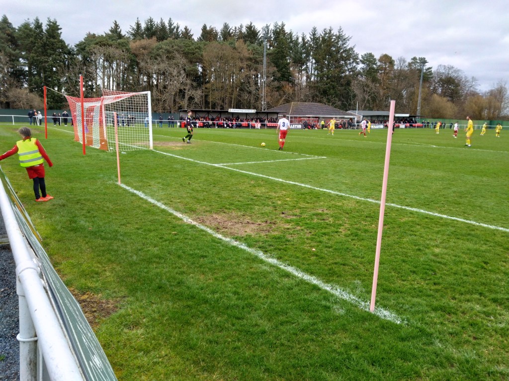 Not the plan today. After a bloody freezing but ace walk around Haddo with my favourite duo since Wayne and Garth. Some bad planning led me to sitting in the house sans everyone with a B plan of RedTV and Aberdeen v Motherwell. But at 14.45 I decided to fire over to the only game that was achievable, a C plan . It was a big one too at North Lodge. As I approached the crossroads of the A920 the car park looked hoaching, suggesting there was to be a big crowd in. This led to me parking on the main road , which is quite mad that other teams were refused entry to the league previously on lack of parking but here I am abandoning the car on an ‘A’ road. Anyway, as I got out the motor I was met with a familiar HFL face in Graeme ‘Spider’ Stewart who obviously fancied a big game. Or them again was maybe watching his next adventure….watch this space. With little time it was a pie and coffee and as I was purchasing the goods I went back to the pre mentioned Wayne’s World as I was met with the two usual friendly faces in the pie hut. But unusually also by another who surprised with my Chicago Blackhawks hat asked why I was wearing it .I explained that when I was a kid I watched the NHL and the reason I adopted the Hawks was because Wayne and Garth supported them and that was good enough for me(“game on”). She was from the Chicago area and thats why she supported them. A far better reason than mine to be honest.No sooner had finished my pie the game was up and running. No matter what, Brechin had to go about their business of winning this at a ground they had yet to register a point at during their prolonged stay in the greatest league on earth. With Brora up against a tough opposition in Banks o’ Dee up the road. A win here could take them top potentially. The mission was three points and they got them with relative ease against a Formartine who seemed to already be on the beach. There was an early chance for Mitchell Taylor who from 18 yards fired an effort ove the bar. With the space he was in a bit of composure would have seen him score. But the Brechin number 3 was to make up for it as he was seriously brilliant throughout. I was well impressed with him and he was a joy to watch. He wasnt long until he was stomping his importance on the game when he swung a ball ito the box for Cillian Sheridan who smashed home a volley. A well worked goal. This coming just after Brora had taken the lead at Dudgeon Park. The same two were on hand for Brechin’s next chance but this time , United keeper Corbett was on hand to pull off a superb save to stop Sheridan’s brace. This was pretty a one way game as Brechin pushed but at the break it was just the one. Much to the surprise of me and my random, we just got talking, company for the match Gary(a sound dude for the record).