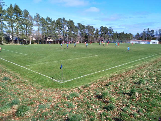 There is something about Alford where it seems no matter when you head over it’s a fine day. Today was no different and as we turned up in the central Aberdeenshire town it was clearly a scorcher with all the families in shorts getting wired into ice cream. With no lunch in our bellies and nae pies at the fitba it was a make shift effort at a fitba pie by ransacking the local baker for some pastry, savoury and sweet. With only chicken pies left it was a fine change from a usual steak. A good start to the afternoon for sure.