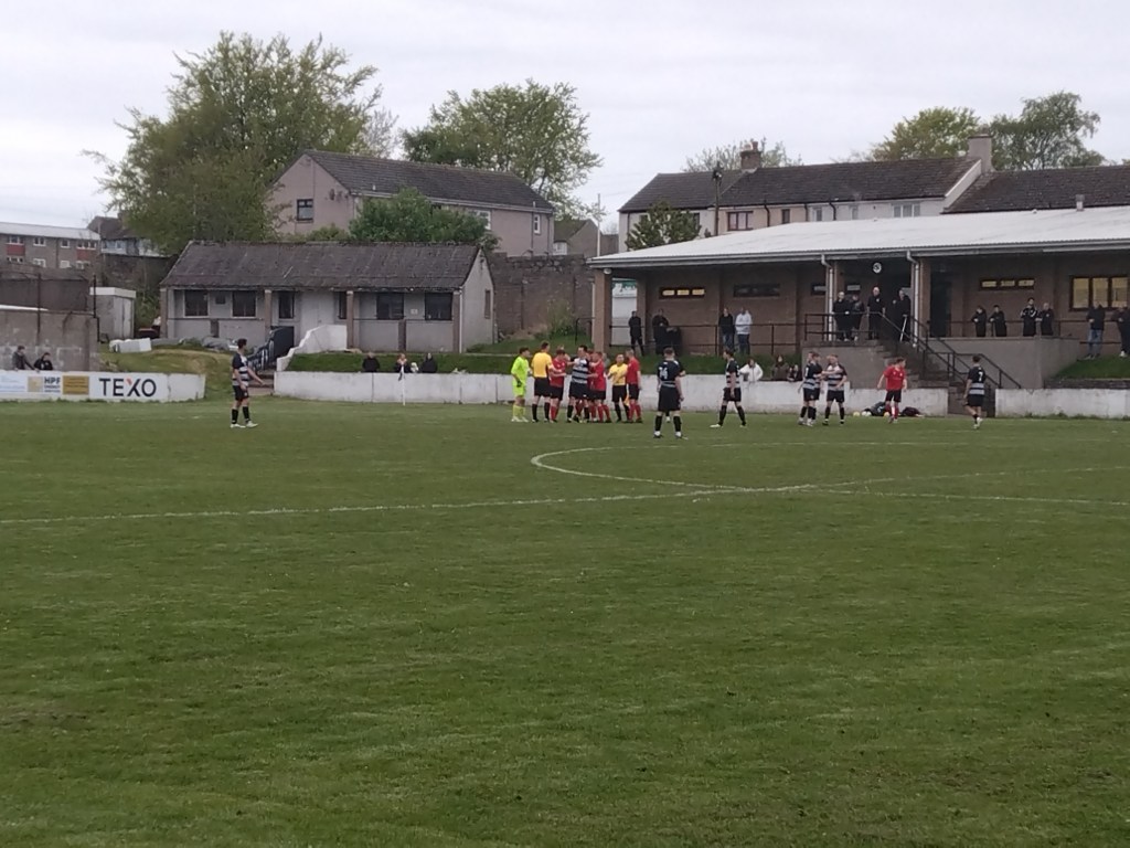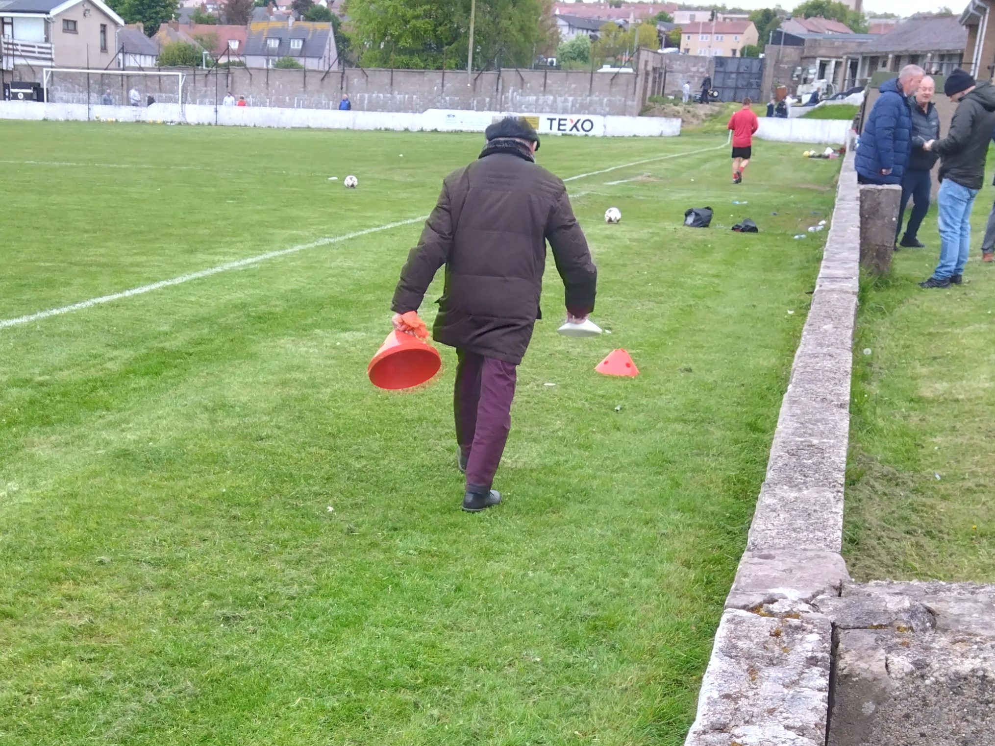 After the half time kick about Wee Man asked to swap sides to the other wing. As we were heading past the goal, Baino said there were two balls over the fence behind the goal. Wee Man decided to help by crawling through a hole in the fence to help out United in not losing what must have been at least 100 quid in balls. He managed to get the balls from the thick growth and even find a third which had been unaccounted for. It was a great determined effort from him. One which he didn’t really need to get involved in. On the pitch United spurned another big chance when Duguid was clean through but dragged his strike wide. Then came an even bigger chance when they were awarded a penalty for a handball. Sunnybank could moan all they wanted, but at the end of the day the hand was not in a natural position and it stopped the cross going into the box. Stonewaller in my eyes. Tremaine stepped up but Bankies keeper Cowie got down to save very well and retrieve the second ball post haste. It was all Ellon and they then struck the woodwork when Neil Irvine rattled the post with an overhead kick. The third finally came when some unselfish play from Duguid out wide saw the ball played across the box to a completely unmarked Lenny Johnson who couldn’t miss. Game over you had to think, especially as Sunnybank had brought very little to the match in the second period. They finally did create a big chance which resulted in a stramash in the box, the ball looked destined to hit the net but somehow failed to do so. The aided by some last ditch defending from Arran Gerrard. Bankies defender Connor Rae didn’t like the Ellon man holding on to him from the ground and looked to have punched him in the face. This incited a rammy with bodies flying about as the Ellon men fired into the black and white players in unity against the treatment of their team mate, once peace finally restored itself and the bag of ferrets were calmed down. Rae received his second caution of the night and was sent for an early bath while having a shit fit at the far side lino en route to the changing rooms. That was game over for sure now and the points heading north. The only thing of not left in the match was the introduction James Bain who Wee Man told me he knew it was Baino as he came on the park and did his double handed hair sweep he continually does. I had to laugh at him picking up on this but he is not wrong. As the game petered out we made our way toward the gate for a quick getaway. This past the young team who had supported their team admirably during the game, but now the team were getting easily pumped by the men in red, they had lowered the tone and were shouting abuse at the bingo players in the Social club, accusing the Ellon keeper of being a “paedo” and other Ellon players of lets say, same sex antics. The full time whistle went an with Newmachar getting beat, the auto relegation was done. In terms of the playoff Islavale were trunced tonight by Stonehaven. Saturday sees Islavale host Sunnybank, a game that could be huge. I hope for this historic Aberdeen side the sun doesnt set on their Premier League stint.