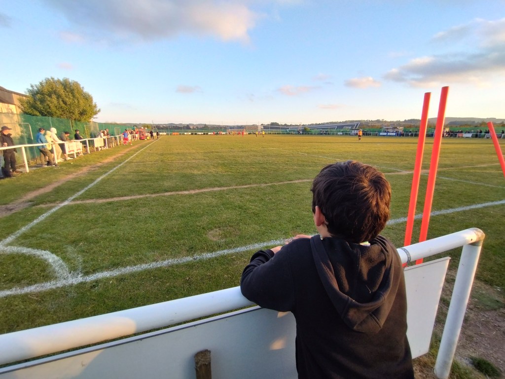 With Islavale being confirmed to the playoffs on Saturday this was a new fixture and possibly the Junior game with most at stake tonight along with the other playoff at Denmore. Wee Man picked it over Hall Russell and the league games at Maud and Culter which suited me given the short distance from the door to Stoneywood. So to New Polo Park we headed for a bit of plane spotting for the second time this season. (We had been to watch the amateurs v Ellon Thistle previously).On a side note, is there any ground in Scotland where the ironbirds are so close? On the park I had a feeling Stoneywood were going to win this despite plying their trade at a lower level. They were looking to bounce back to the top flight immediately after relegation last season. Going by the first half you would think a promotion could be a high possibility as they took the game to the Keith side and camped out in the visitors half. They should have been in the lead early door but striker Kane was leaning back as he headed over the bar while unopposed at close range. That was the biggest chance before the home side did take the lead and what a hit it was. A defensive header landed 25 yards out and a Stoneywood Parkvale man stepped on to it to unleash a venomous howitzer which flew past Brindle into the top corner. So good was the hit it didnt even register with me who scored it as my eyes followed the ball. By the time I looked back the scorer was already mobbed by elated team mates. Superb goal. Ill also blame my hayfever which was causing havok with eyes which were itchy as fuck and streaming all game. The hosts had a couple of chances yet couldn’t extend their lead. But to be fair to Islavale’s centre half partnerships of Stevie Patterson and Ricky Henderson they were very good and throwing their bodies at and into everything.