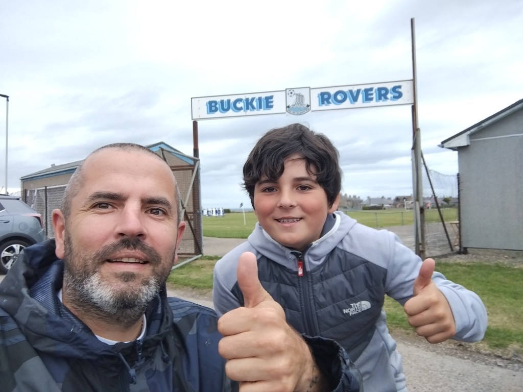 Merson Park, somewhere that reminds me of two things. Wind and battles with Rovers striker ‘Beavis’* when I played for Buchanhaven Hearts. The playing days may be gone but the wind is still there trying to spoil games that’s for sure. The reason for this visit across to Moray was a promise to Wee Man after having a kick about on the pitch prior to a visit to the towns HFL club Buckie Thistle. This was just prior to Rovers resurrection and I knew the possibility was there.