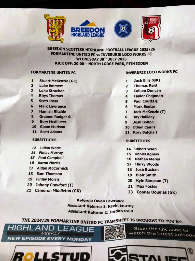 A bonus game this as I didnt expect to be anywhere near home or North Lodge at kick off. On my tod, sans Wee Man I was looking forward to this as it was going to be a tight affair. Formartine looking to make amends for what many have said was two points dropped v the Broch on Saturday and the Locos looking to brush themselves down and get points on the board after what was a scudding from Clach, I couldnt envisage anything but a close one. Thats exactly what transpired. Not a derby that will live long in the memory but United won’t care a jot.
