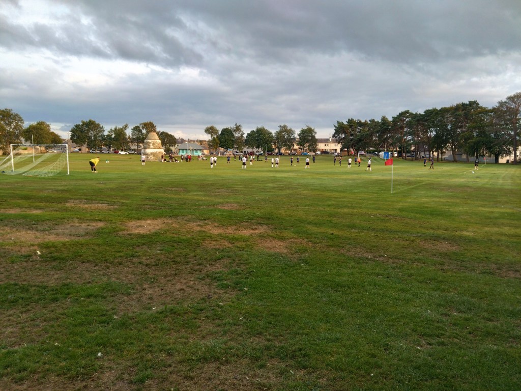 A somewhat last minute plan to head up to Elgin tonight. This brought on by a change of days for Wee Man’s game this weekend from Sunday to Saturday to accommodate the early kick off at Pittodrie. This kyboshing our first viewing of the season of Ellon Thistle as they travel to Kincorth. With the young one being fitba daft he asked for a game tonight instead and after seeing the fixtures, asked for Clachnacuddin ‘A’ v Inverness Thistle in the North Caley up at Evanton. But with a game tomorrow that would have been too late a night. I managed to sell a trip to the Doocot to him though, somewhere I was intrigued about in terms of fitba quirks but also to see the Vikings as when I saw them away at ECCT last season I said to Viking man Gary Souter we would head across some day for a home game.