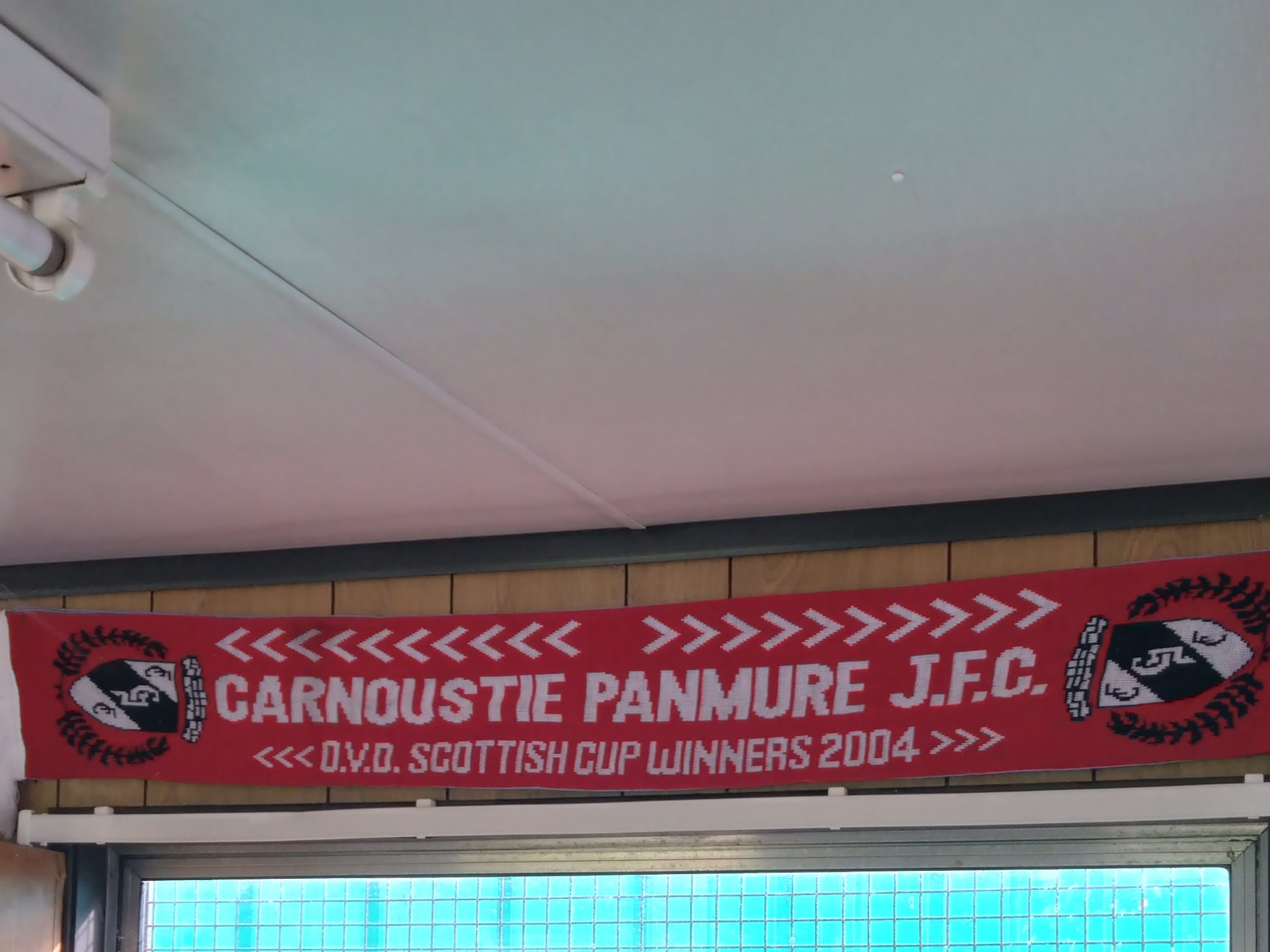 From here we headed the 25 minute drive to Carnoustie. Parking up at Laing Park early doors we decided for a wander about the town this taking us to the Corner Hotel for a bit of food and a pint before nipping back up the road for the fitba. Sometimes fitba clubs just immediately become good in your book. It happened today as we entered Laing Park, blethering with the guys on the gate started the ball rolling, inclusive of being let in for free. A brilliant gesture. One of the guys was the dad of the co-chairman Graeme Christie who had told Graeme we were there which led to coffee and a piece in the corporate shack while chatting with Graeme pre-game. Interesting stuff on the walls and also in the conversation with Graeme who is relatively new to his role. Also there were a group doing the full corporate and they were a fine bunch too. A good start to Wee Man’s maiden Laing Park adventure.