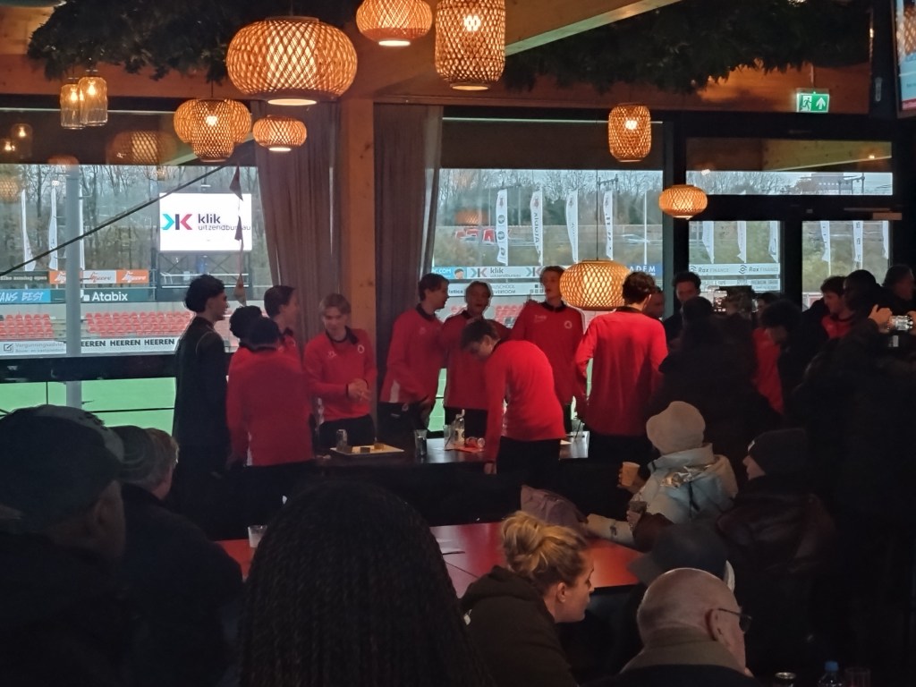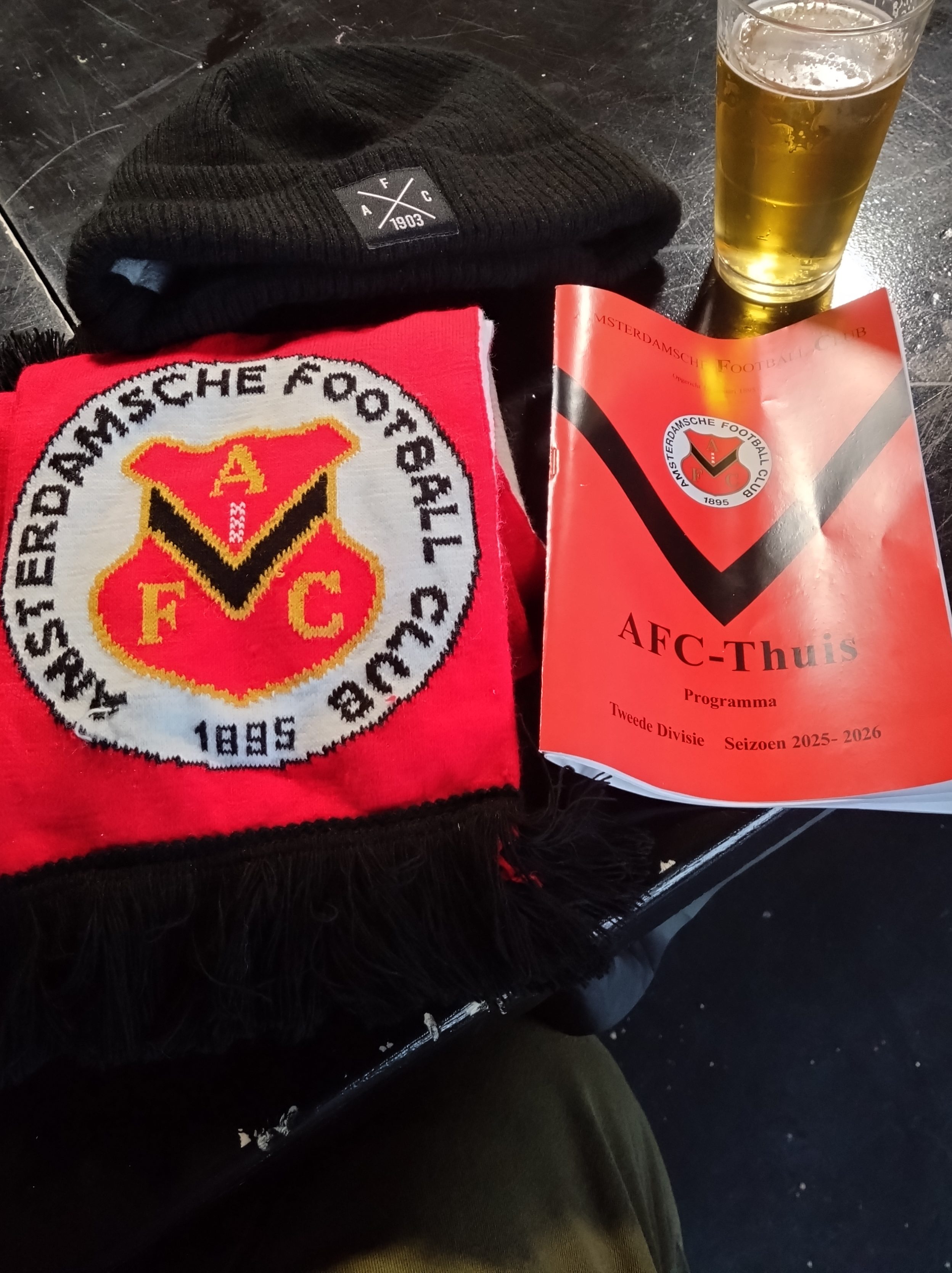 Half time saw a first for me. With plenty of food on offer in the bar I opted for something I have never took on at a football match before. Banana bread, and it was absolutely beautiful. A random but a stupendous choice of top level baking. The first scoof of a pint tasted rank after it though. Back outside with the darkness creeping in GVVV were still looking the better team and had the ball in the net early when a fast flowing attacking move saw Wimilio Vink on the end of a pinpoint cross to tap in but the offside flag was immediately raised. The game died somewhat with little to talk about for a spell mid second half, this barring an Indy Lee long range effort over the bar for the home side. This allowing me to notice details. One being how smart the AFC shirt was. Made to look old fashioned , it is a beauty. Just plain red with a black diamond, think Airdrie pattern. I also realised that the nearby motorway is non-stop nose to tail traffic(the Den Bosch FC bus was part of it at one point). Amsterdam is a busy busy place. Back on the pitch a raft of subs were made by GVVV who then doubled their lead with one of said subs Krijn Meeuwsen who within a minute of entering the play was on hand to tap in from close range. Questions will need to be asked about the space he was in. GVVV were not to care as they made their way back south east with 3 points in the bag. A enjoyable watch despite the lull in the second half. A very good standard too for ‘amateurs’. I could see me coming back here if I find myself in the same long layover scenario given the lack of hassle in doing so. With plenty time still burn I finished off my time in Amsterdam Zuid by nipping for a couple of pints (at the All Day Breakfast Club) and attempted to watch the the Aberdeen game on RedTV International which would not allow me to do so as it wasn’t available in my location. This as I sat in the biggest city in Netherlands. I am positive I was international at this point.