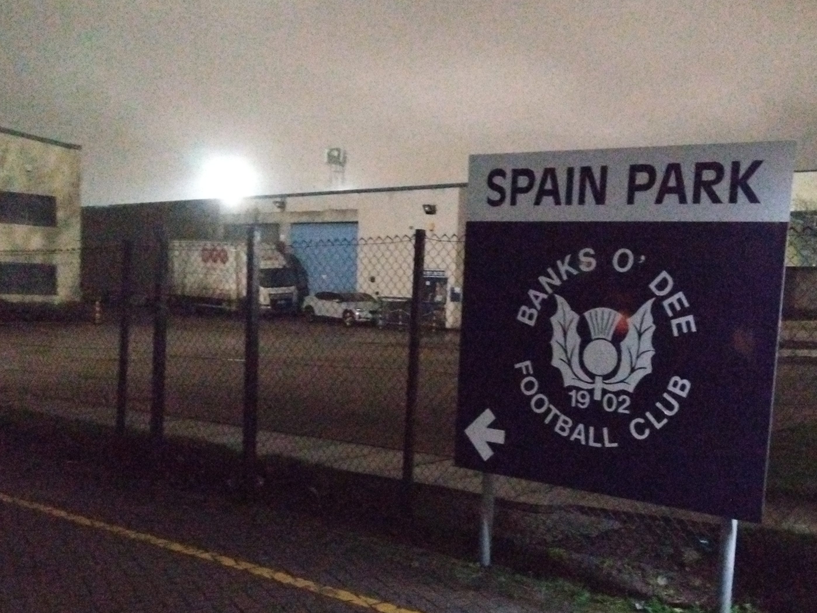 I have been home from work 11 days and its pretty much been dark the whole time since. On top of that it has been wet, wet and more bloody wet and with another one of those “storms” hitting last night , it seemed the wee HFL card would be obliterated tonight due to the water. Our local team Formartine United were the only game to fall foul to crap weather in the end. For a few reasons the plan was always going to be a trip to Spain Park tonight. The first being due to the crushed tyre nature of the park which would surely see the game on and secondly it was a chance to see Lossie, a team we both have a lot of time for after our shenanigans on the telly a few years back. The final reason was as we had not been to for a while. A while actually turned out to be almost a year which was a non-descript 1 v 0 victory versus the aforementioned Formartine (22 days shy). Time which seems to have flown in. This came as a surprise given how much we frequented the place over the last 6 years or so. Spain Park is actually Wee Man’s most visited ground on his travels to date.