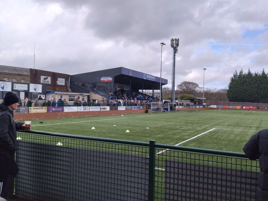 On rivalry, The Bucks find themselves in the league with Macclesfield FC for the first time ever since the phoenix of Macclesfield Town emerged 6 years ago. But games v the now defunct Town were at a premium too over history. Rivalry may be true this season as anyone on your league is surely a rival, but on the whole maybe this could be a derby of local pride as opposed to a rivalry given the scarcity of matches between the Bucks and Macc new and old. Whatever it is, we set off early from Aberdeenshire at a time when only lorries were on the road to attend this after I spied the fixture on Scorebar.